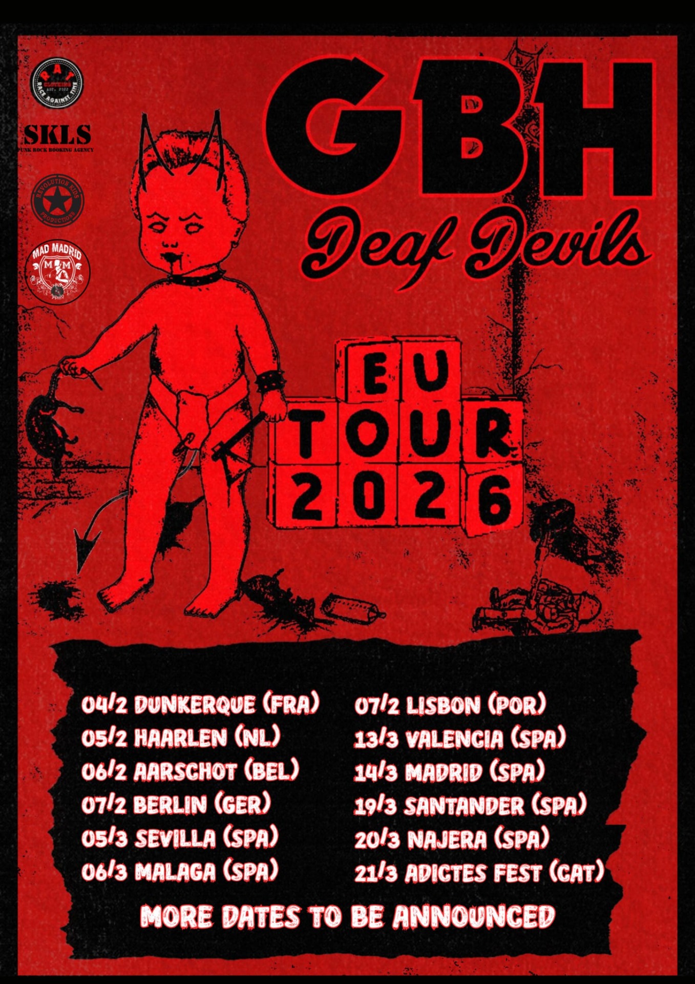 Serán conciertos donde el público podrá comprobar que GBH sigue en plena forma, descargando grandes dosis de energía a base de guitarras afiladas, ritmos contundentes y actitud intacta, mientras Deaf Devils aportan el contrapunto generacional con un directo feroz y un nuevo disco que está recibiendo una notable acogida por parte de prensa y público. Una alianza que recoge el testigo del punk clásico y lo proyecta hacia el futuro.