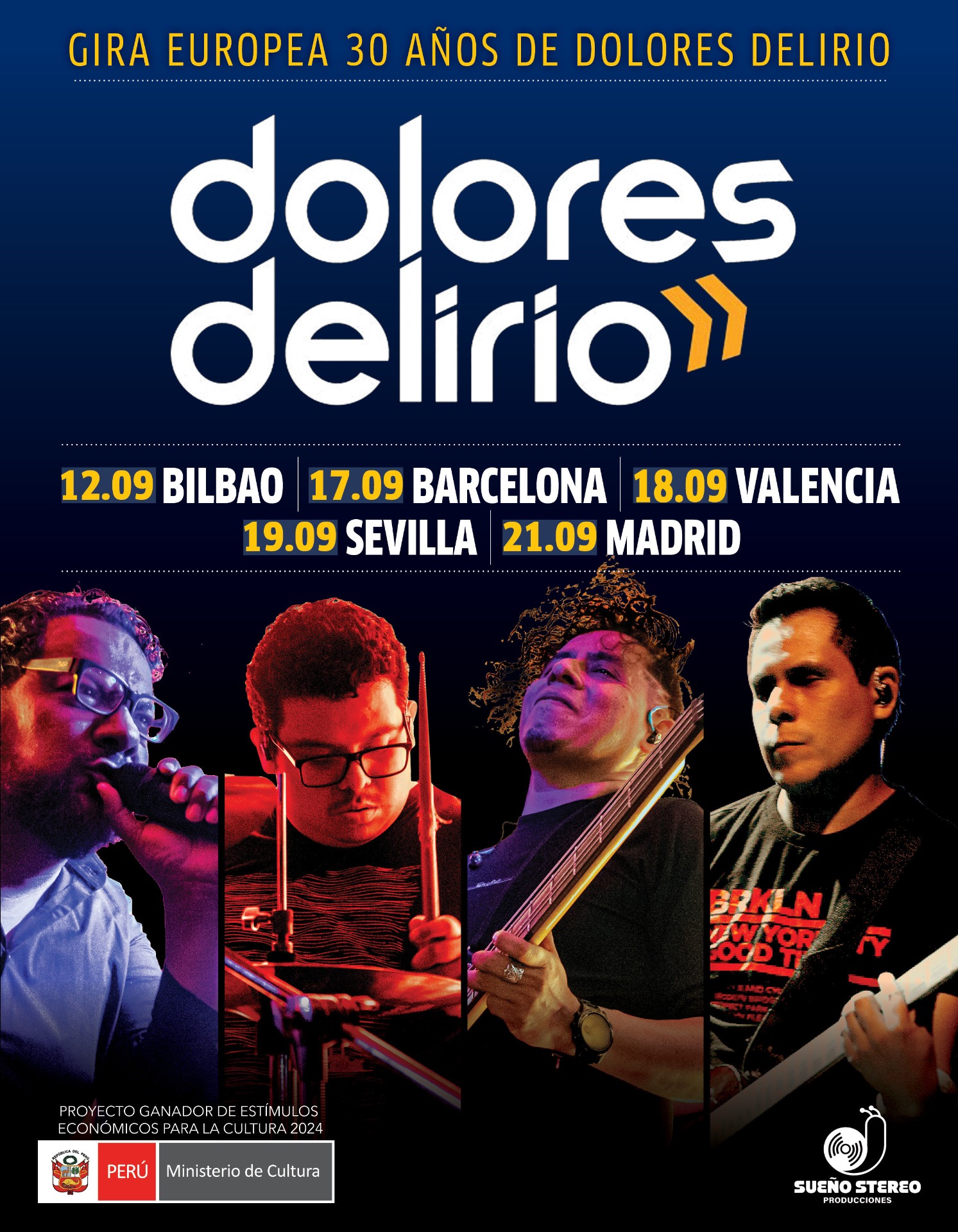 Con más de 30 años de dilatada carrera y siendo una de las bandas más respetadas de Perú, Dolores Delirio prepara su primer asalto a España con una gira donde no dejará a nadie indiferente. Cinco ciudades y cinco conciertos donde harán vibrar al público como solo ellos saben hacer. Y es que el directo de Dolores Delirio es volcánico, de esos que te atrapan desde el primer momento, tanto musical como fisicamente, ya que una de las grandes premisas de la banda es hacer partícipe al público de todo el concierto.