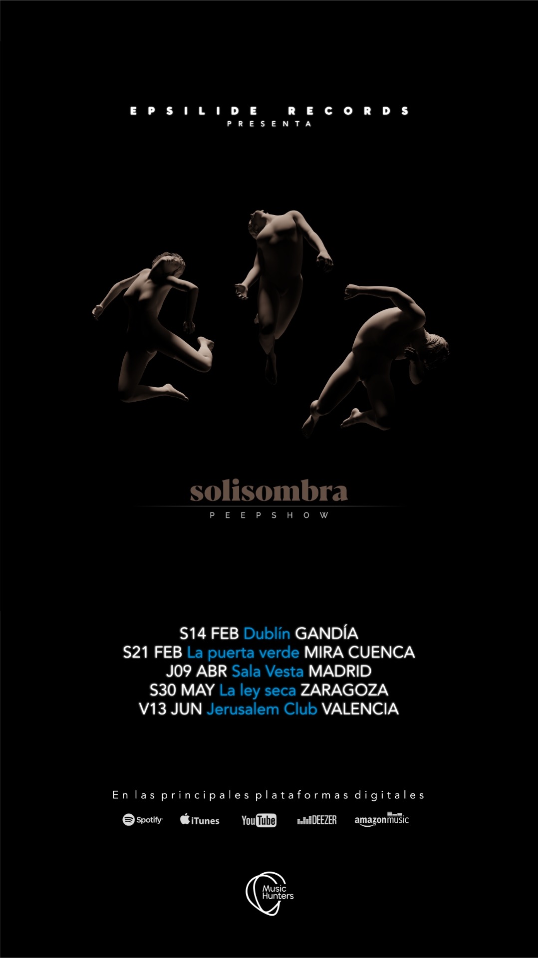 Formados por Uve Martínez, Germán García y Ana Moncho, Peepshow se han mantenido como una de las propuestas más singulares surgidas de la escena valenciana. Su discografía ha transitado entre el rock, el indie y la electrónica sin fijar un territorio definitivo, alternando momentos de contundencia guitarrera con otros de mayor riesgo atmosférico. Esa voluntad de mutación constante es también uno de los ejes de "Solisombra", un álbum de once canciones que refuerza la identidad sonora del proyecto a la vez que amplía su paleta expresiva.