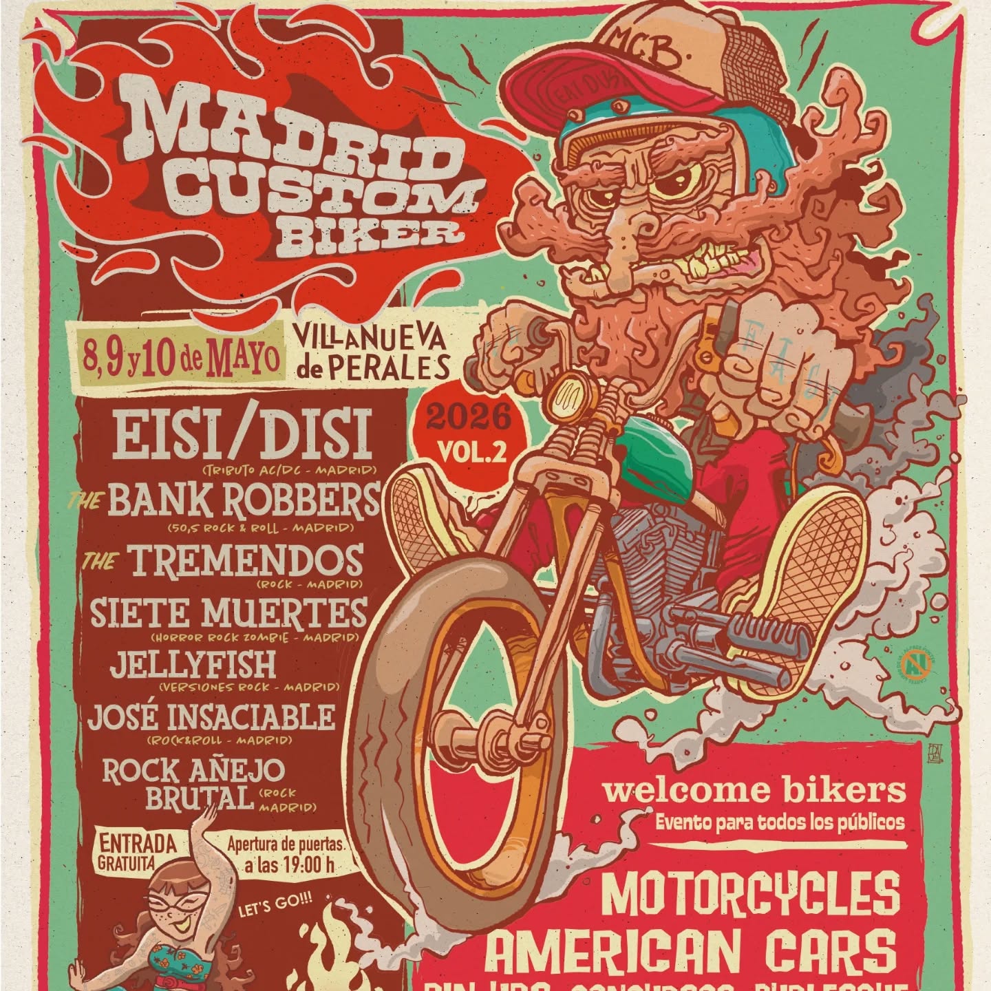 Domingo 9 MAYO a las 13:30h en el MADRID BIKER FEST en la localidad de Villanueva de Perales, festival de entrada gratuita , que gira alrededor de la cultura motera y que cuenta además con desfiles pinups, comida, coches americanos , stands, etc….