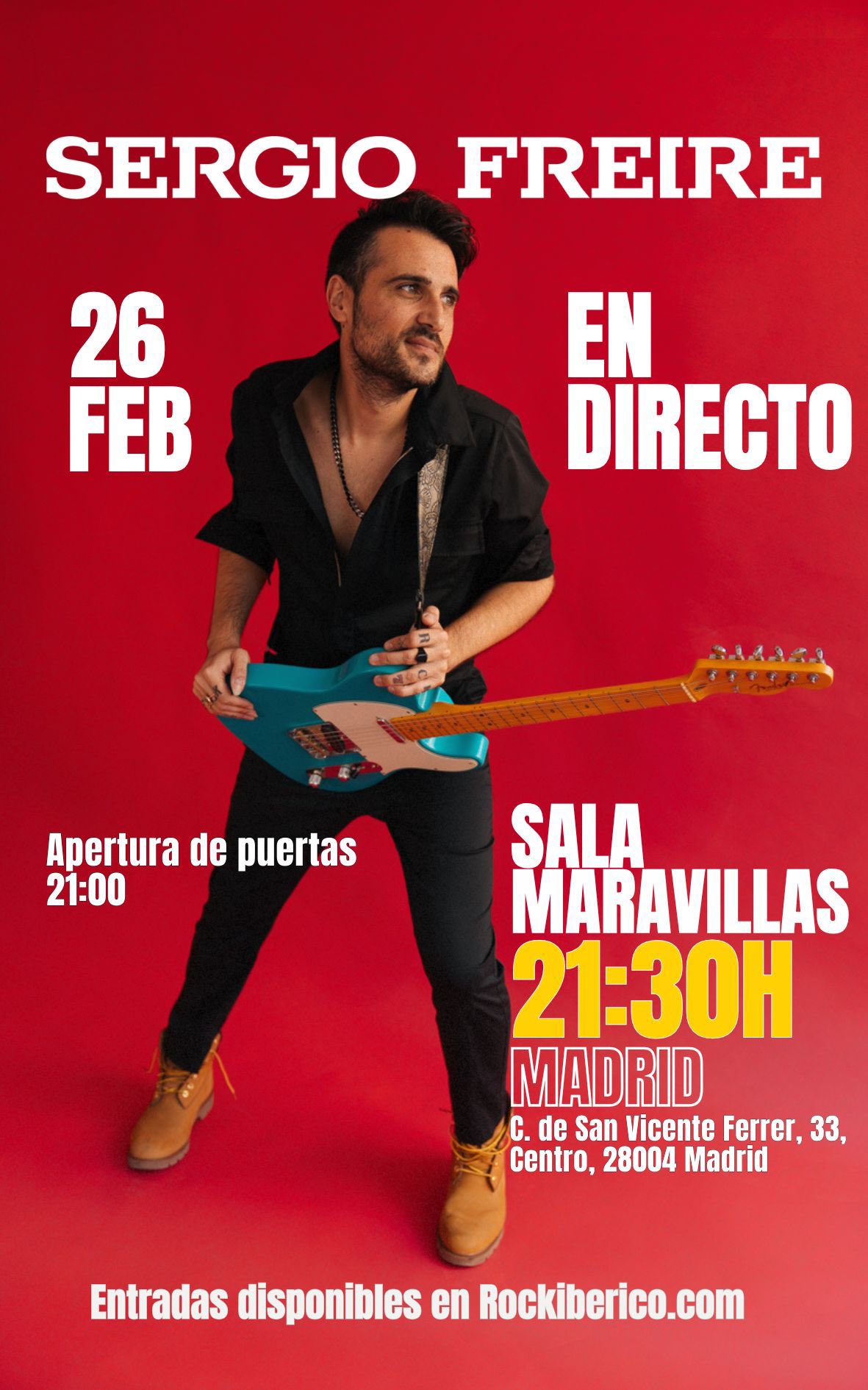 El artista sevillano Sergio Freire aterriza en Madrid para presentar en directo su nuevo trabajo discográfico, Sincericidio, el próximo 26 de febrero en la Sala Maravillas, a partir de las 21:00 horas. Un concierto que promete ser una descarga de rock & roll honesto, visceral y sin concesiones.